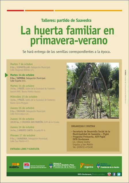En Pigüé, en Dufaur, en Colonia San Martín, en Arroyo Corto, y en Saavedra, se llevarán a cabo los próximos encuentros organizados por el Municipio y el Programa Pro Huerta del INTA.
