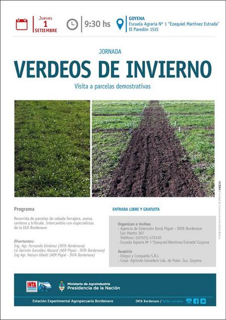 El INTA hará una Jornada de Verdeos de Invierno en Goyena