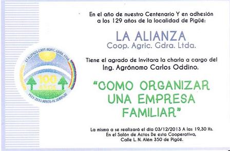 El Ingeniero Agrónomo Carlos Oddino estará dando la charla titulada 'Cómo organizar una empresa familiar'.