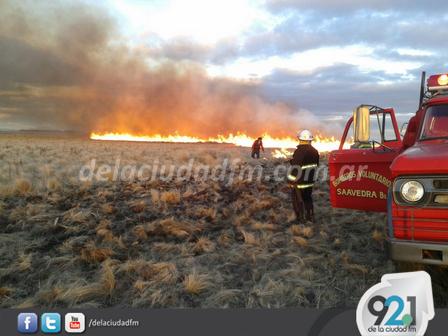 Bomberos de Goyena, 17 de Agosto, y Saavedra trabajaron para combatir las llamas que arrasaron más de 100 hectáreas.