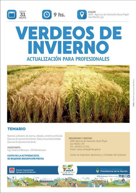En la Oficina Pigüé se hablará de verdeos de invierno.
