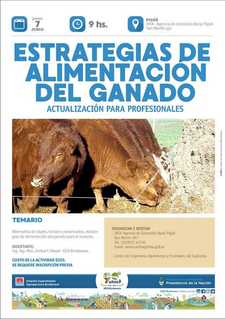 Allí el Ingeniero Agrónomo Aníbal Fernández Mayer disertará acerca de las Estrategias de Alimentación del Ganado.