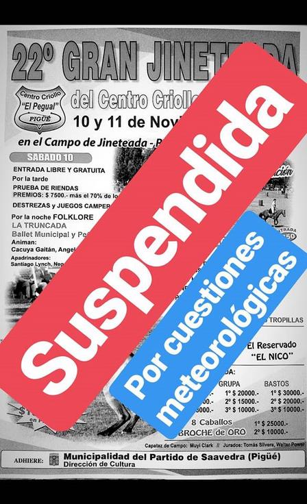 El Pegual suspendió su jineteada en Pigué.