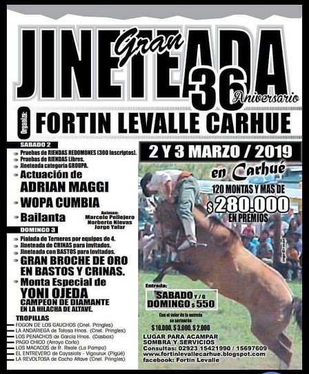 Fortín Levalle recibirá a 120 montas los días 2 y 3 de marzo en Carhué en la jineteada 36 aniversario.