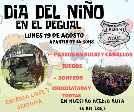 El lunes 19 de agosto, a las 14.30 horas, celebrarán el Día del Niño en El Pegual.