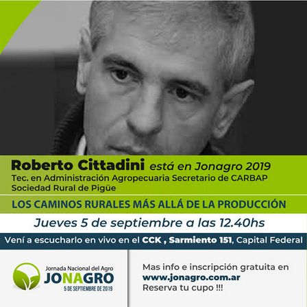 JONAGRO contará con la disertación de Roberto Cittadini, el jueves, luego de las 12.40 horas.