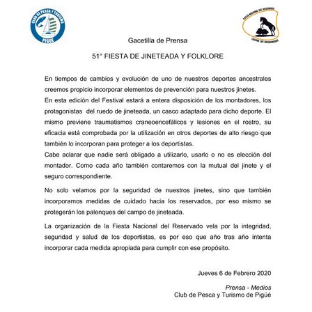 En el transcurso de estas horas, a través de un comunicado, la entidad organizadora de la Fiesta Nacional del Reservado dio detalles de los instrumentos que buscará ejecutar para velar por la seguridad en el ruedo.
