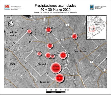 El INTA Bordenave dio a conocer un reporte de las precipitaciones acumuladas entre los días 29 y 30 de marzo de 2020.