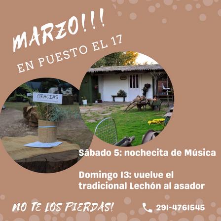 El establecimiento rural del Puesto de Campo El 17, para el domingo 13 de marzo, prepara una jornada con una recorrida por el lugar, y de menú tendrá lechón al asador.