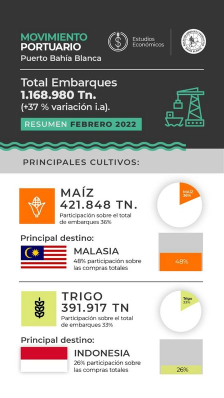 En febrero de 2022 se embarcaron por el puerto 1,17 millones de toneladas, mientras que, en lo que va de 2022 los envíos suman 2,26 millones de toneladas.
