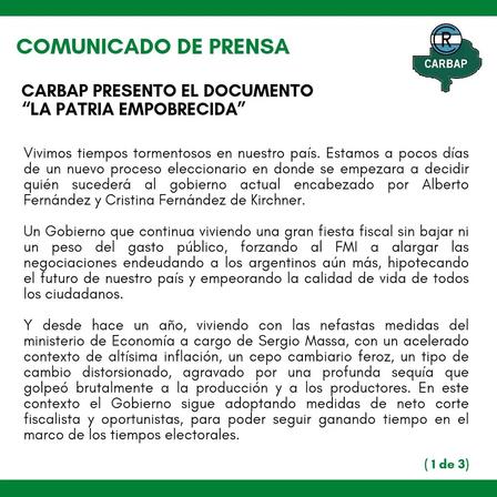 Es por eso que hay que poner punto final a este desmanejo. En las próximas elecciones hay una nueva oportunidad. Porque la patria es de todos, y no solo de los que se unen tan solo para ganar una elección”.