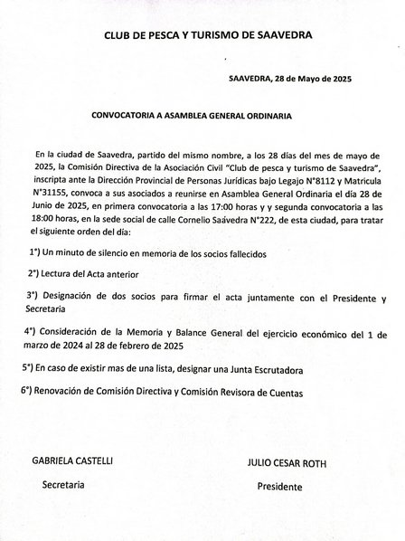 La Cooperativa Agrícola Ganadera Limitada de Espartillar, junto al Grupo Asegurador La Segunda, confirmó que el encuentro tendrá lugar el día miércoles, 18 de junio, a las 19.30 horas, en el Salón de Usos Múltiples de la Escuela Número 8.