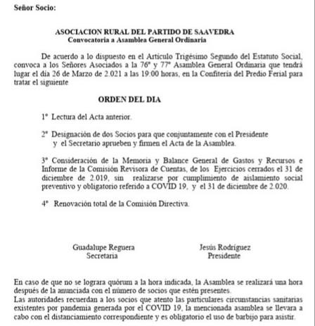 La Municipalidad de Saavedra, a través de la Secretaría de Desarrollo Económico, junto con las instituciones y concejales que integran la Comisión de Emergencia y/o Desastre Agropecuario del Distrito de Saavedra le solicitaron al Ministro de Desarrollo Agrario de la Provincia, Dr. Javier Rodríguez, que declare la emergencia y/o desastre agropecuario para la totalidad de los Cuarteles del Partido.