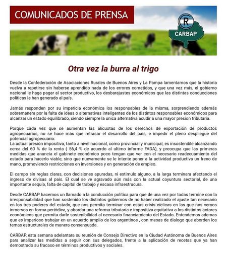En FM de la Ciudad el Presidente de la Asociación Rural de Saavedra comentó “a mí no me sorprende para nada, creo que lo había escuchado en la campaña de Alberto que había dicho que había que ordenar eso porque le parecía que tenía que ser porcentaje y no que tenía que ser un monto fijo en pesos que se va diluyendo con las devaluaciones”.