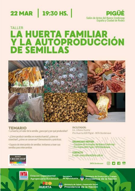 Esta convocatoria del INTA tendrá lugar, a las 19.30 horas, en el Salón de Actos del Banco Credicoop.