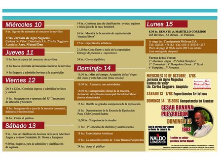 Según le indicaron a FM de la Ciudad, allí, entre otras actividades, habrá una exposición de reproductores, de hacienda gorda, y un concurso de vientres.