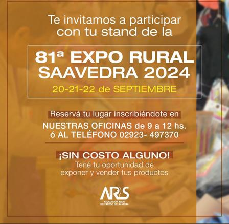 La Expo Saavedra contará con la asistencia de Dos Hermanos de Luis Ritter, de Espartillar, Las Sierras Sur de Horacio Favre, de Pigüé, Huaico-Mun de Martín E. Keller, de Tornquist, Barón Rojo de Leonardo Milano, de Dufaur, Pirehueico de Marcelo Giménez, de Nueva Roma, Santa María de Inverdan S.A., de La Dulce, 23 de Noviembre de Néstor Aldazábal, de Coronel Dorrego, La Ilusión de Sergio Mitzig, de Bajo Hondo, La Abadía de Cominagro S.A., de Tornquist, El Palenque de Sebastián y Esteban Otondo, de Pigüé, Don Nicolás de Nicolás Colantonio, de Coronel Dorrego, El Ciervo de Mariano Descalzo, de Salliqueló, Don Reinaldo de Jorge Meier, de Dufaur, y El Trébol de Cecilia Antinori, de Tornquist.