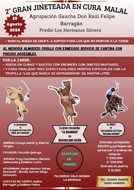 En FM de la Ciudad el integrante de la Agrupación Raúl Felipe Barragán de Cura Malal destacó “largamos una entrada anticipada por 10.000 pesos donde participás de sorteos de 100.000 y de 50.000 pesos. Eso es hasta el viernes antes de la jineteada”.