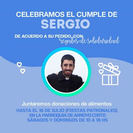 Al celebrarse el cumpleaños del Padre Sergio el Sacerdote le solicitó, a manera de regalo, a la comunidad religiosa arroyocortense, impulsar una iniciativa solidaria.