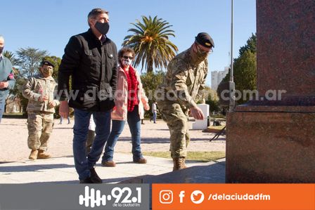 Hubo colocación de ofrendas florales, izamiento del pabellón nacional, y se cantaron las estrofas del Himno Nacional Argentino.