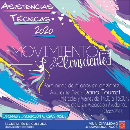 Para niños de 6 en adelante, bajo la modalidad de las Asistencias Técnicas, habrá un Taller de Movimiento Consciente a cargo de Dana Tourret que estará dictándose en el salón que la Asociación Ayudarnos tiene en Chaco 251.