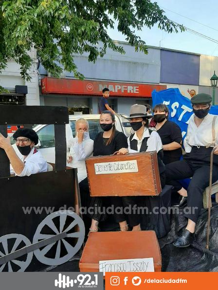 Con un tren sobre un remolque, las figuras de Clemente Cabanettes, Francisco Issaly, y mujeres junto a hombres acompañándolos la institución marcó presencia en el desfile.