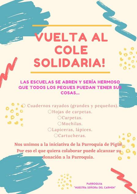 Los aportes para colegiales estarán siendo recibidos hasta el sábado 6 de marzo en el Templo Nuestra Señora del Carmen.