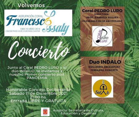 Junto al Coral Pedro Luro y al Dúo Indalo el 11 de diciembre, sábado, a las 21.00 horas, tendrá lugar un concierto gratuito.