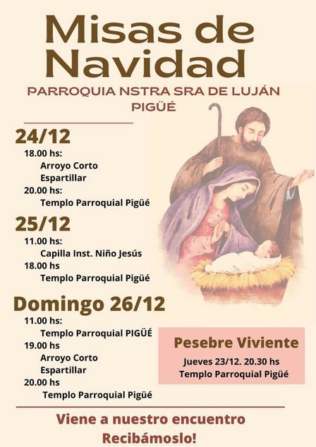 A las 18.00 horas tendrán lugar celebraciones de Nochebuena en el Templo Nuestra Señora del Carmen de Arroyo Corto y en el Templo San Miguel Arcángel de Espartillar.