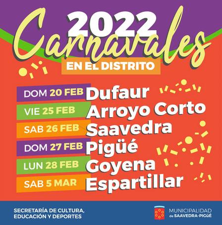 A partir del domingo 20 de febrero, y hasta el sábado 5 de marzo, las distintas localidades del distrito tendrán sus Carnavales 2022.
