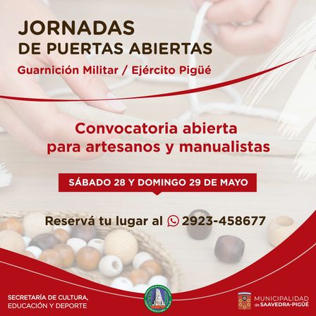 Artesanos y manualistas que deseen estar presentes, con sus puestos, podrán comunicarse al 2923 45 86 77.