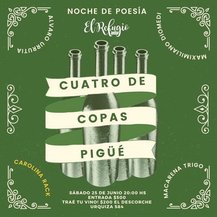 Este sábado, 25 de junio, desde las 20.00 horas, Carolina Rack, Macarena Trigo, Maximiliano Diomedi y Álvaro Urrutia presentarán una noche de poesía en la sala de calle Urquiza 584 de Pigüé.