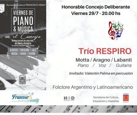 El Trío Respiro se presentará con la participación, como invitado, de Valentín Palma, en percusión.