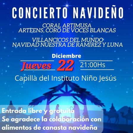 El Coral ARTIMUSA y el Coro de Voces Blancas ARTEENS estarán realizando la presentación de villancicos de distintos países del mundo como así también de la Navidad Nuestra de Ramírez y Luna.