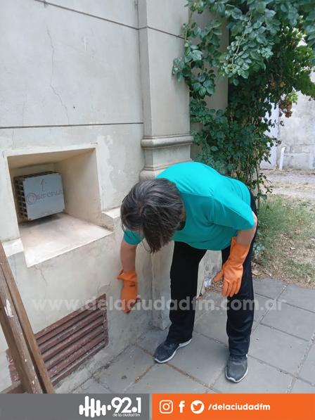 Realizaron tareas con la colocación de protector a la puerta, limpieza de placas, lijado, lavado y cepillado de la pared en el espacio ubicado en calle Ciudad de Rodez.