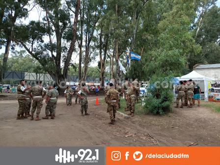 Los músicos de la Guarnición del Ejército Argentino de Pigüé se encuentran en el predio de Laguna Las Encadenadas.