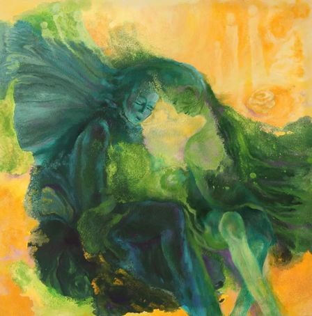 En la imagen puede verse la obra 'Conexión' desarrollada en la técnica mixta-óleo sobre tela en una superficie de 80 centímetros por 80 cm