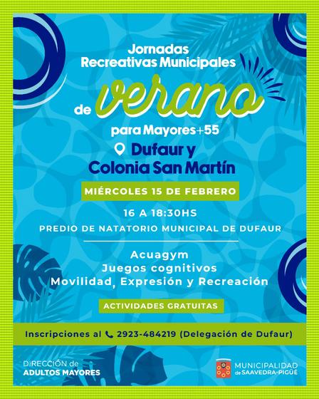 Las propuestas de la Dirección de Adultos Mayores estarán disponibles hoy, miércoles, 15 de febrero, de 16.00 a 18.30 horas, en el predio del natatorio municipal de Dufaur.