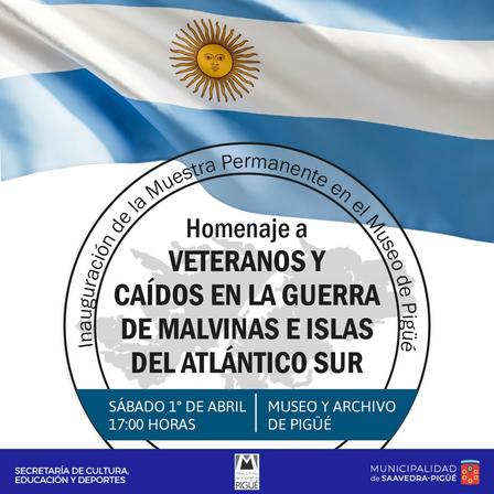 Mañana, sábado, en el Museo y Archivo de Pigüé, se realizará la Inauguración de una Muestra Permanente en Homenaje a los Veteranos y Caídos en la Guerra de Malvinas e Islas del Atlántico Sur.