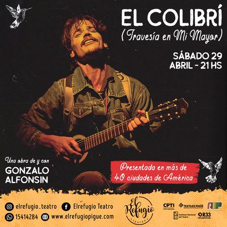 Gonzalo Alfonsín sostuvo “el sábado, a las 21.00 horas, en El Refugio, el espectáculo El Colibrí es un unipersonal con música en vivo”.