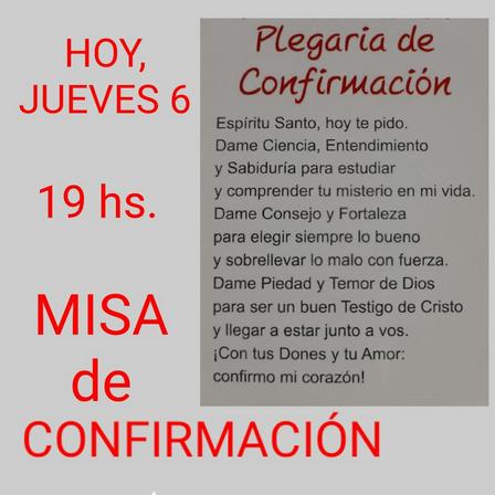 Se hará, en Arroyo Corto, una misa en la que se concretará el Sacramento de la Confirmación.