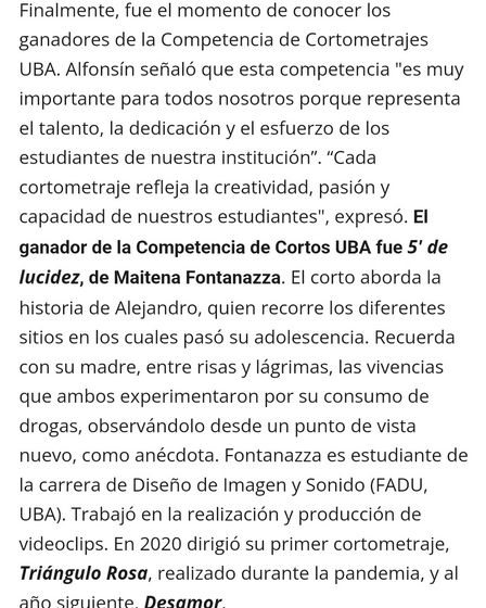 Maitena Fontanazza ganó en el Festival de Cortometrajes de la UBA
