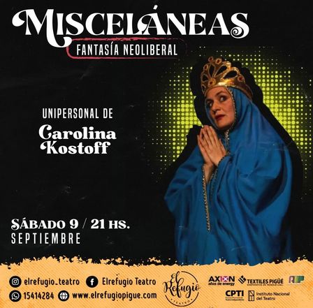 El sábado 9 de septiembre, a las 21.00 horas, se llevará a cabo la puesta en escena de la obra que interpreta Carolina Kostoff.