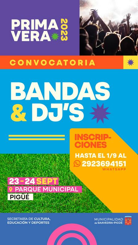 Bandas y DJ's están siendo convocados, desde el Área de Cultura Municipal, para ser considerados a la hora de armar la plantilla de shows de la Fiesta de la Primavera.