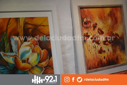Acompañada por Ricardo Camandona fue la expositora quien abrió al público algunas de sus creaciones en pintura.