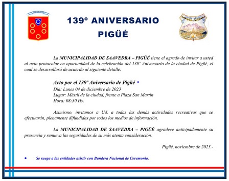 Difundieron el cronograma de los actos protocolares por el Aniversario de Pigüé