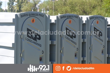 Estos sanitarios son provistos por la firma local Baños Químicos Pigüé.