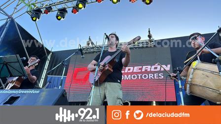 Elías Culiqueo, Nacho Fabre y Juan Sportelli ya están desplegando su repertorio folclórico sobre el escenario de la Avenida Cornelio Saavedra.