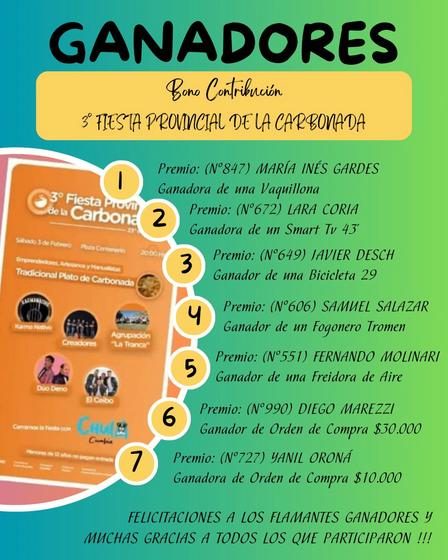 La Fiesta de la Carbonada realizó el sorteo final de su bono contribución