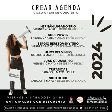 Las entradas anticipadas, para cada uno de los shows de abril y mayo en el Espacio Cultural CREAR, tienen descuentos.